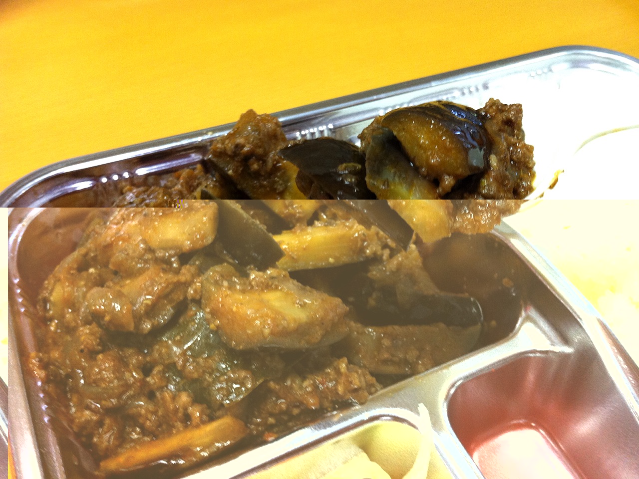ルーと言うよりスパイスの効いたナスがゴロゴロ入っています。